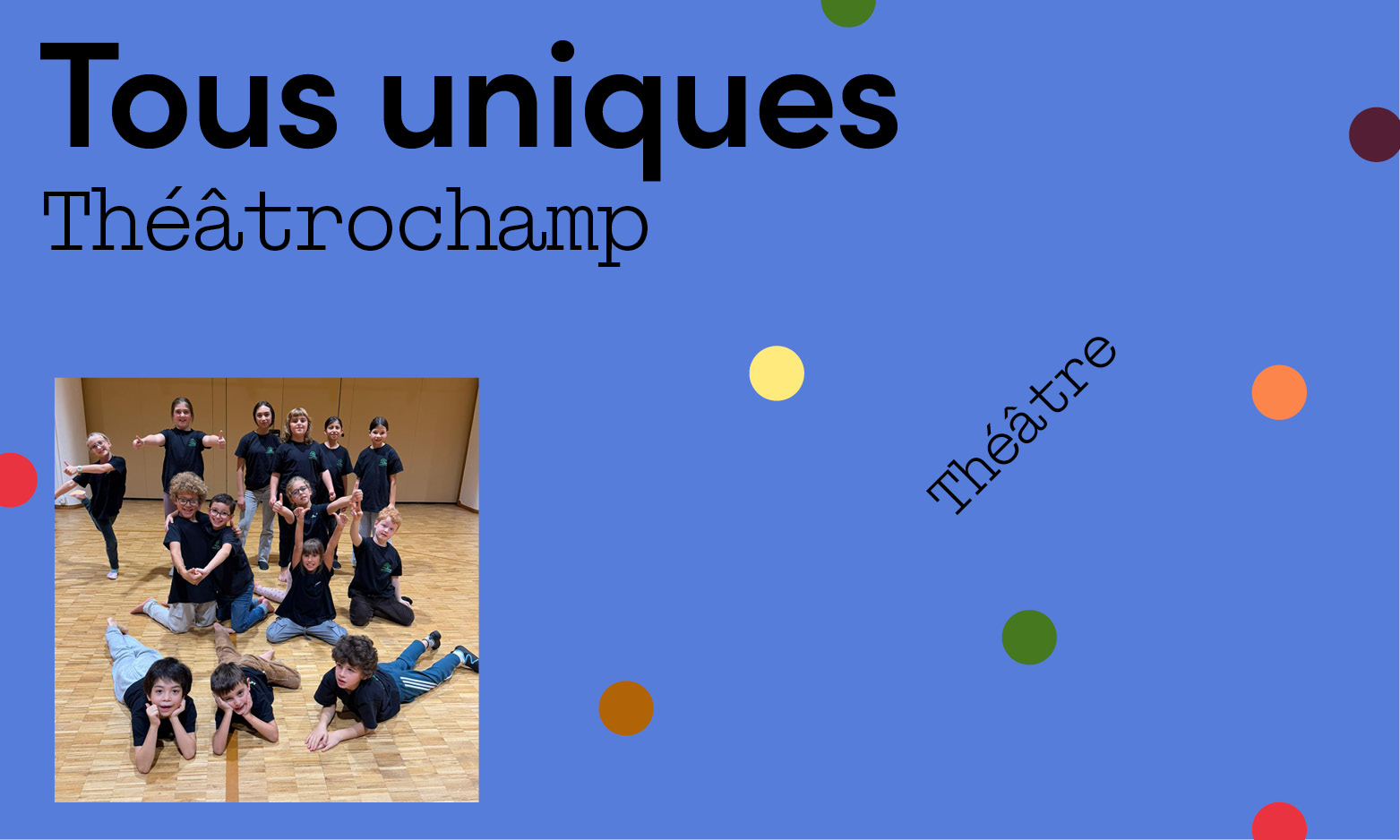 Depuis 1990, Théâtrochamp fait grandir les enfants grâce au théâtre. Sur scène, les jeunes apprennent à s’exprimer, à dépasser leur timidité et à gagner en confiance. Fidèle à sa vocation d’aborder des thèmes qui questionnent, la troupe présente Tous uniques, une création portée par des enfants de 6 à 13 ans.
