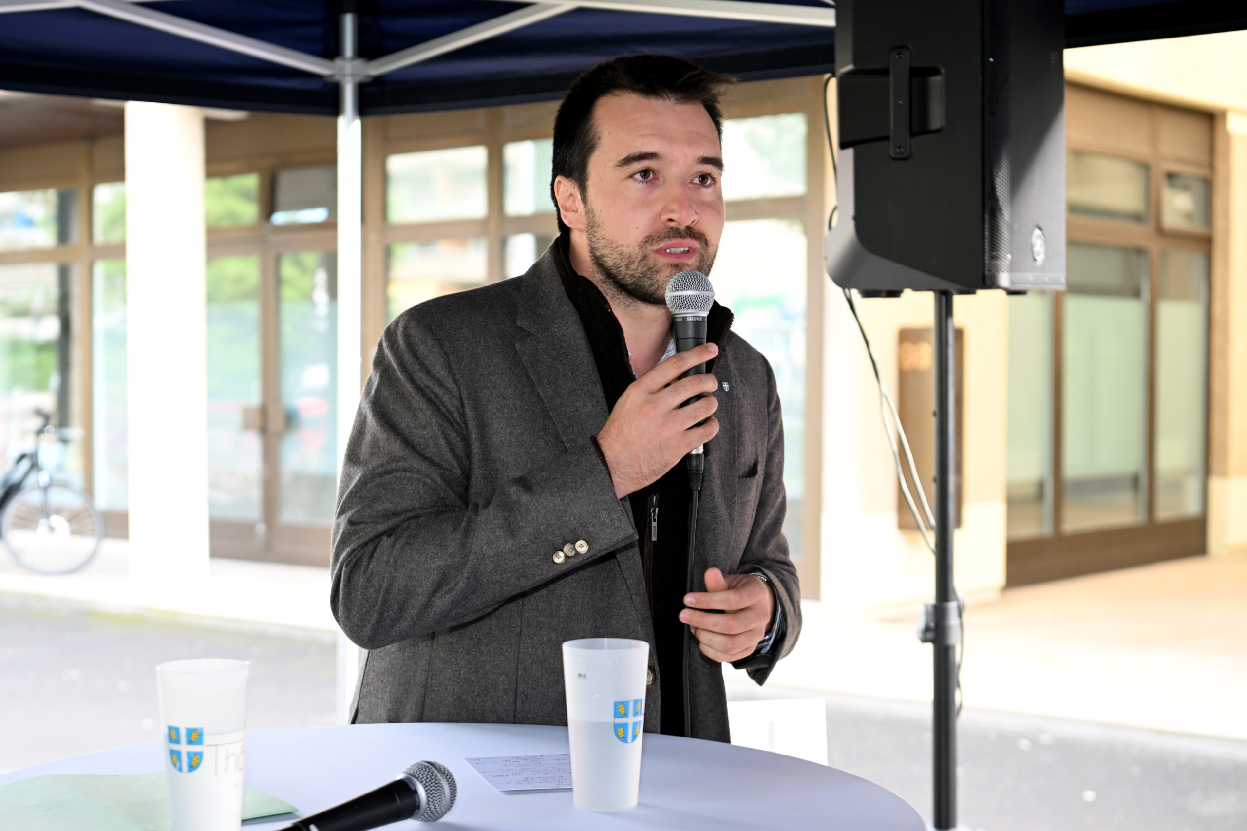 L’inauguration du mur a eu lieu le 12 septembre 2024 sous forme d’apéro-philo en présence du Maire, M. Bruno da Silva, de l’athlète suisse Celine van Till et des habitants thônésiens.